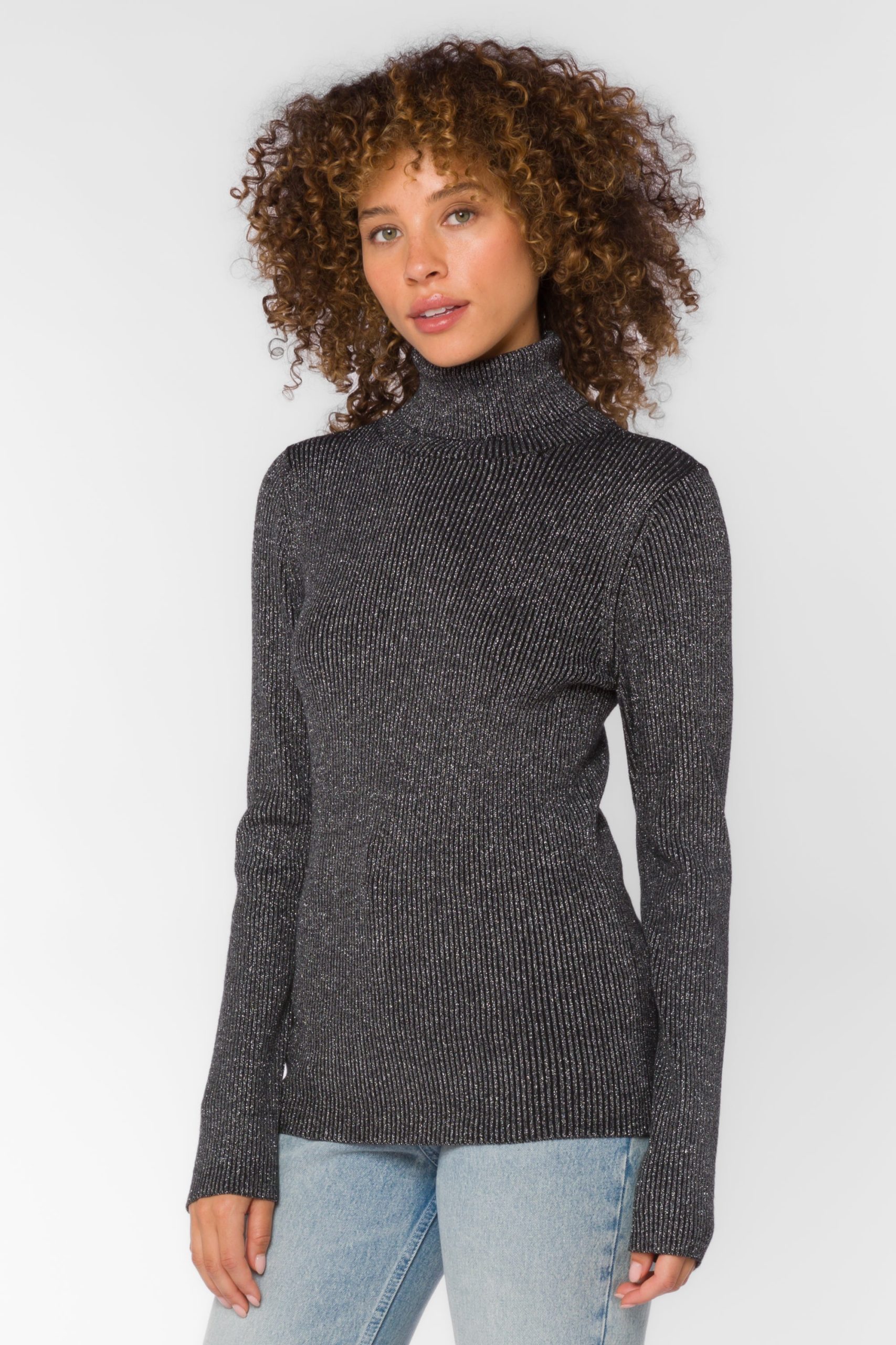 The is the perfect long-sleeve lurex turtle neck to add that bit of sparkle to your closet. Made with a soft and stretchy material, this item is an essential item for the colder seasons.