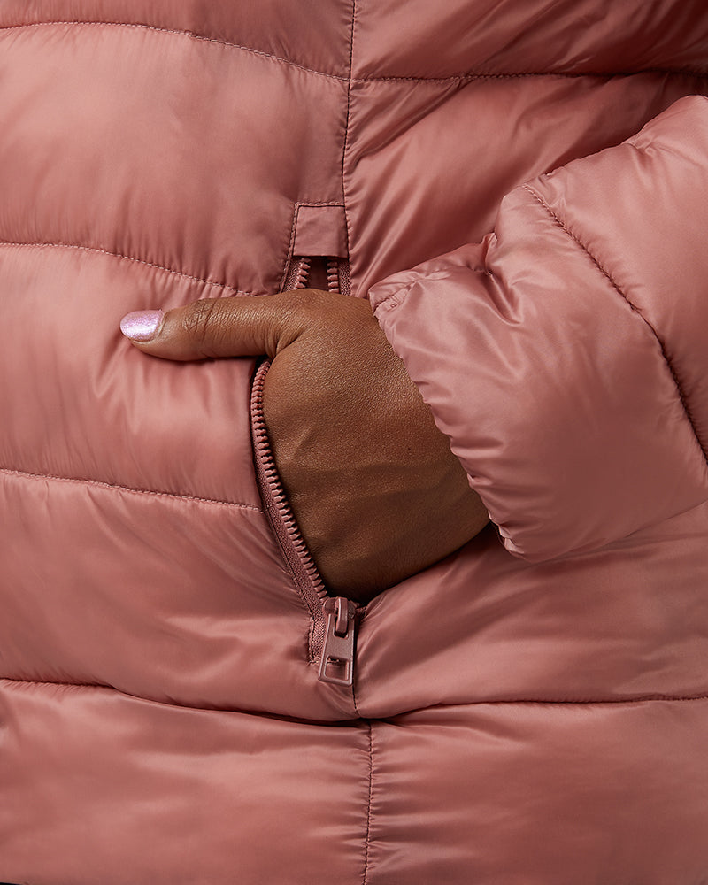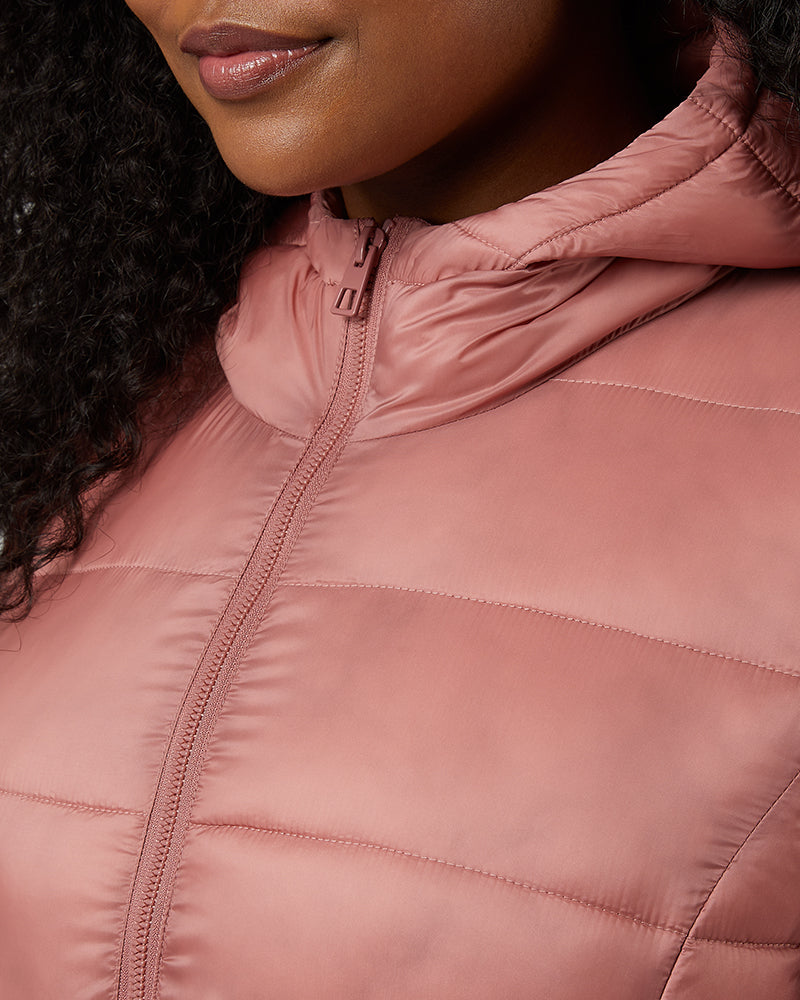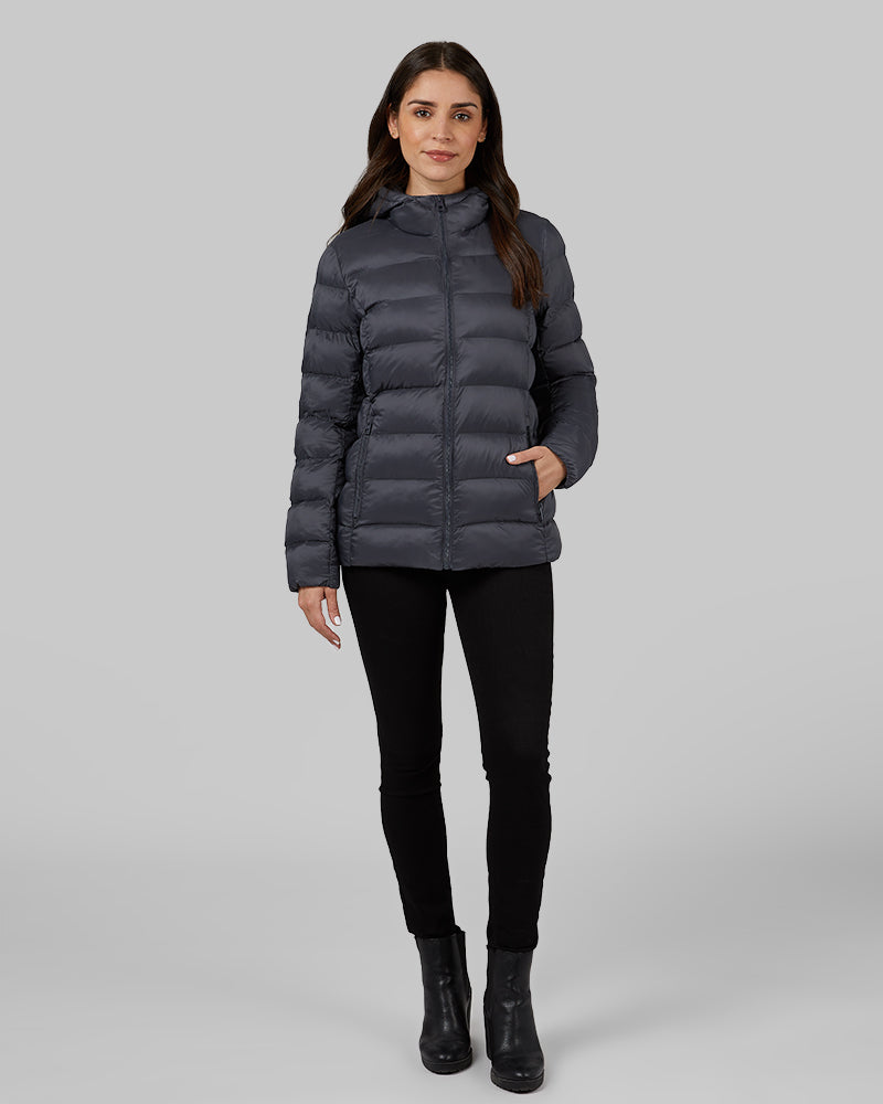 WOMEN’S LIGHTWEIGHT POLY-FILL PACKABLE HOODED JACKET
