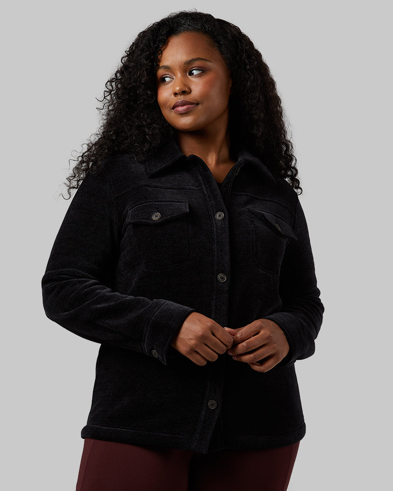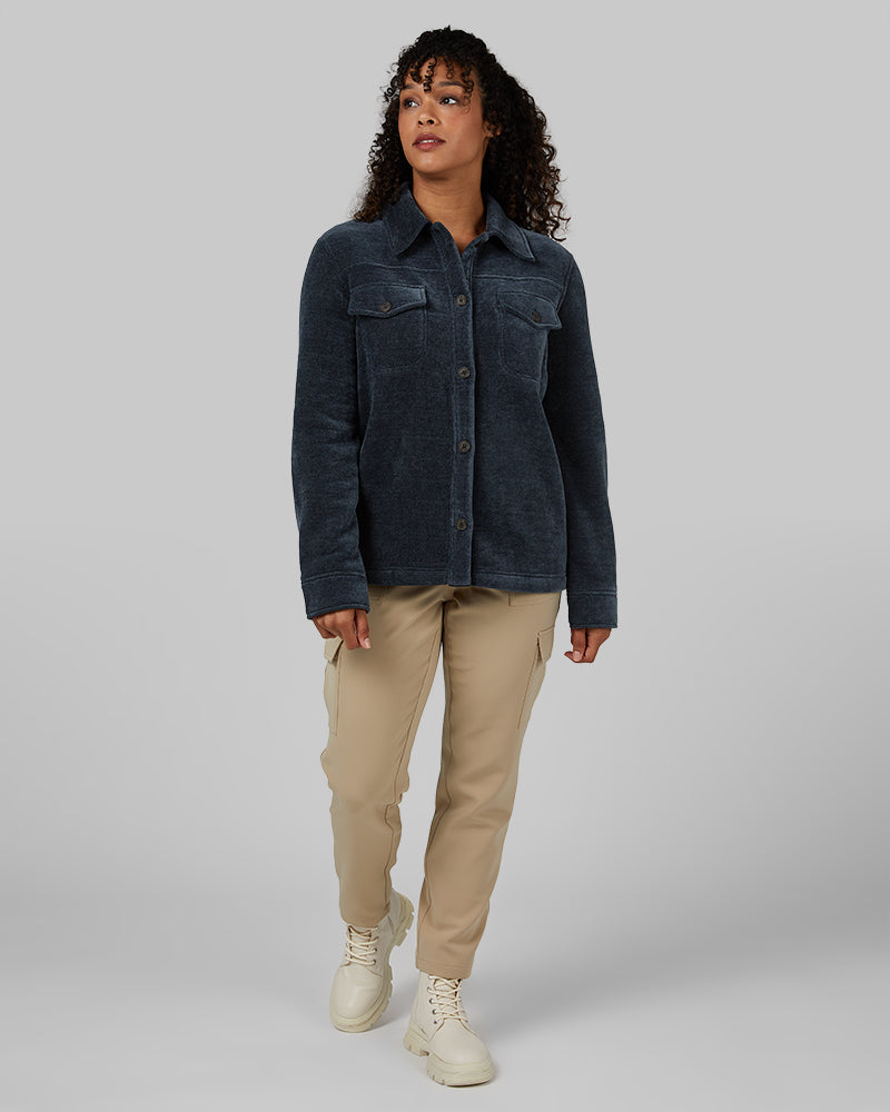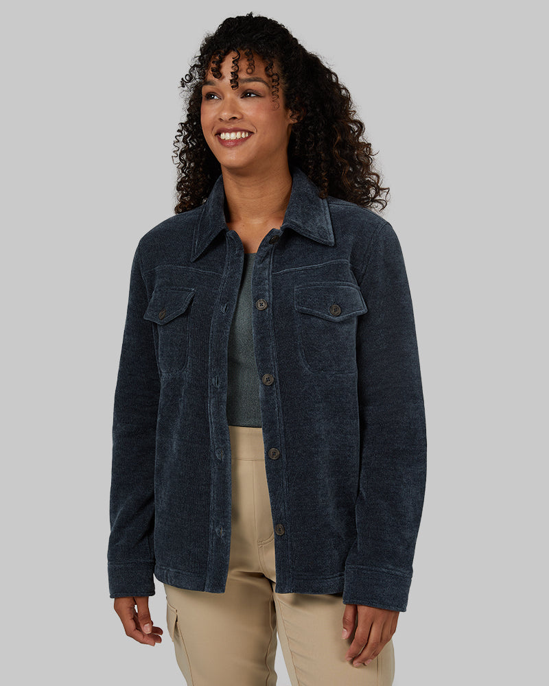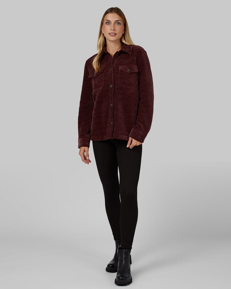 WOMEN’S VELVET SHERPA-LINED SHIRT JACKET
